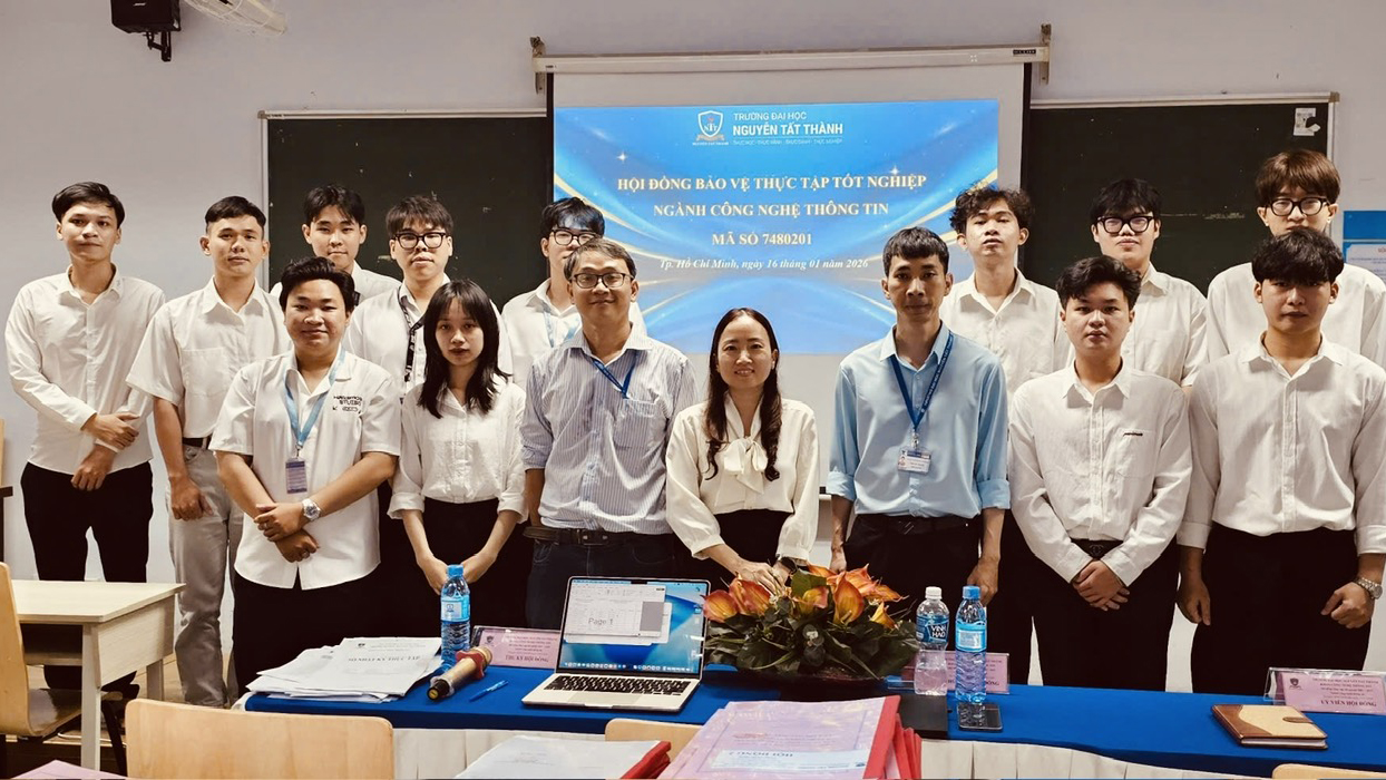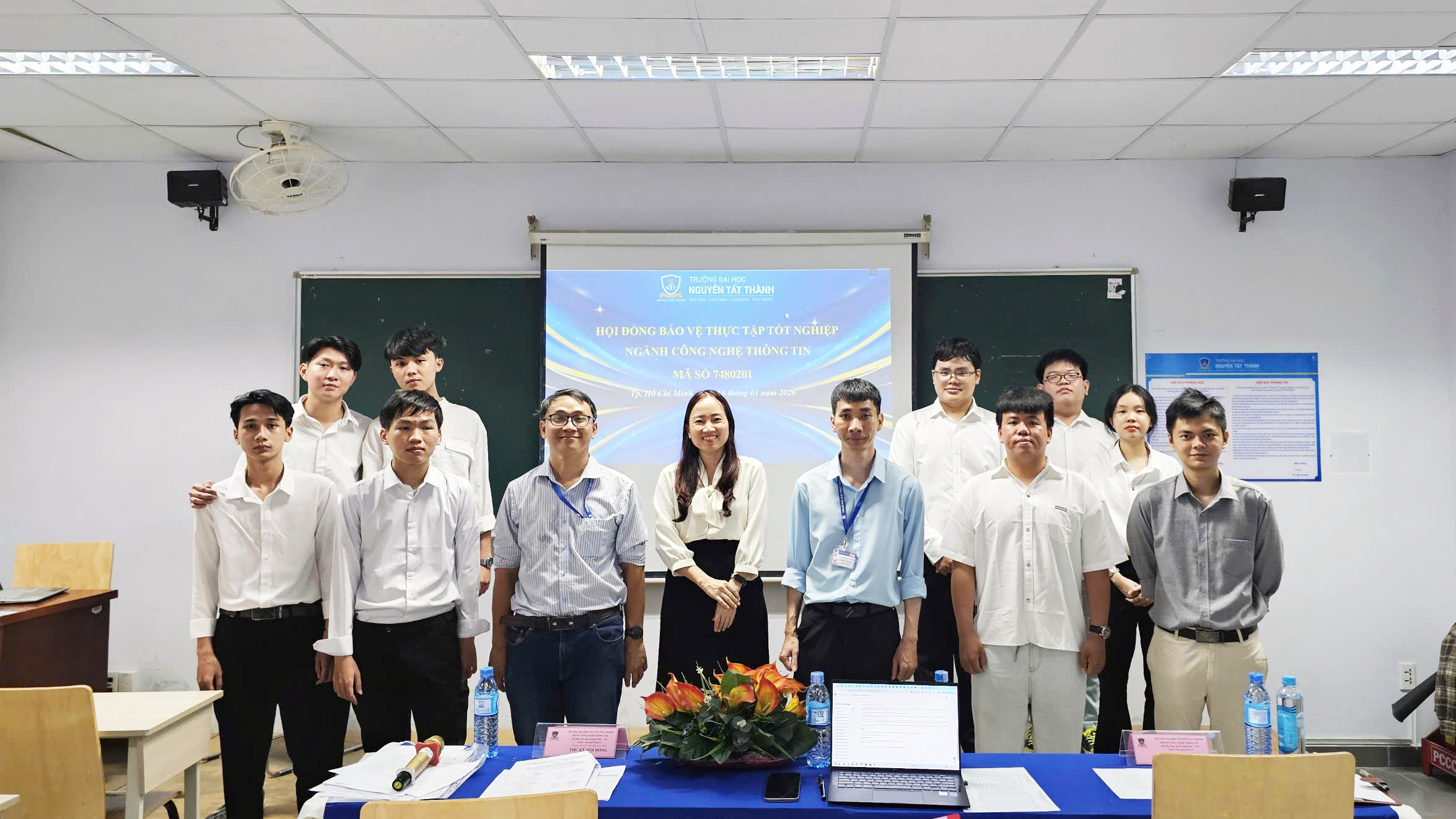 Khoa Công nghệ Thông tin – Trường Đại học Nguyễn Tất Thành đã tổ chức Buổi đánh giá Báo cáo Thực tập Tốt nghiệp cho sinh viên học kỳ 1 năm học 2025–2026 trong thời gian từ ngày 16/01/2026 đến ngày 19/01/2026. Đây là hoạt động học thuật quan trọng trong chương trình đào tạo, nhằm tổng kết và đánh giá quá trình thực tập tốt nghiệp của sinh viên tại các cơ quan, doanh nghiệp và đơn vị chuyên môn.