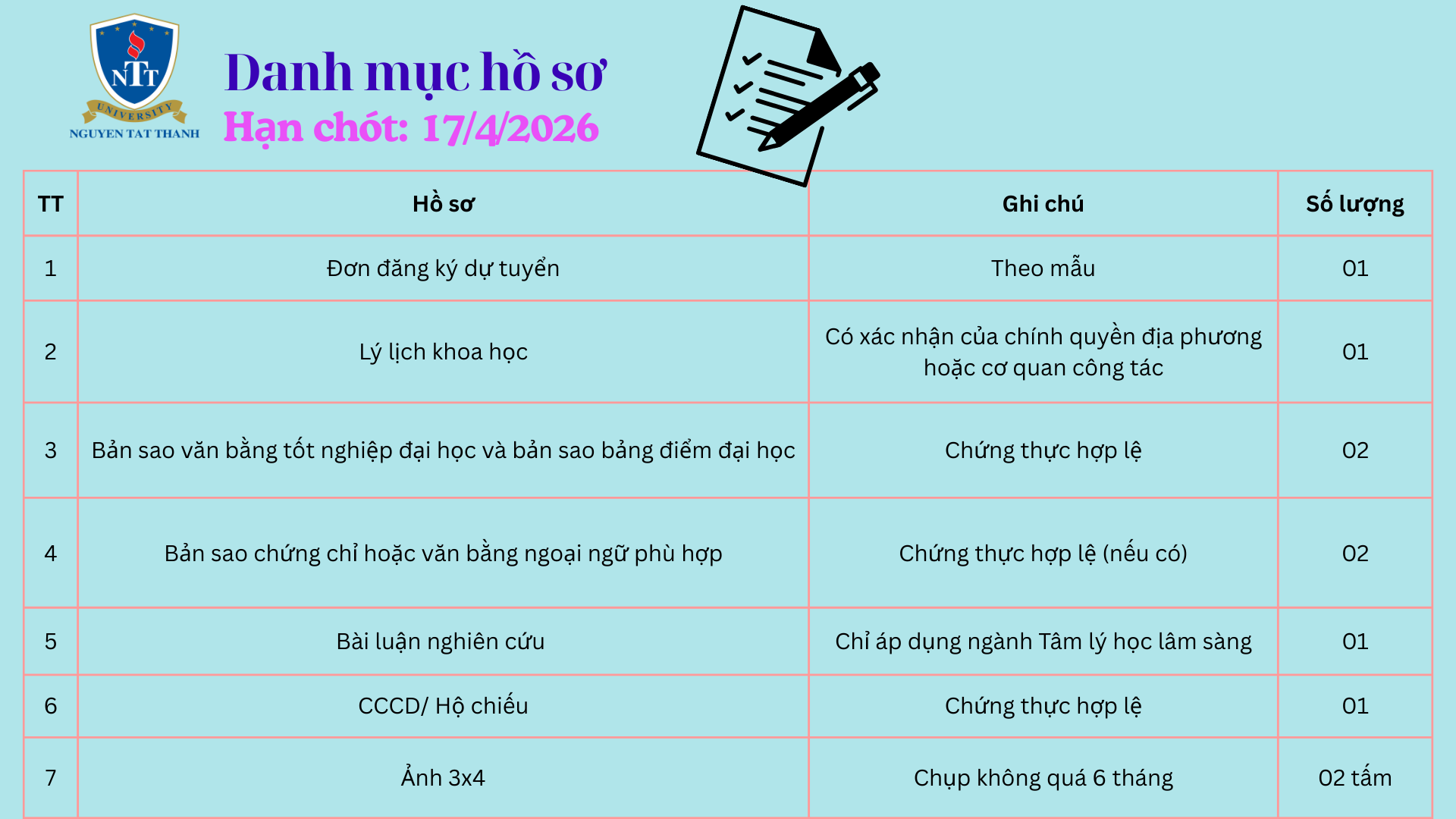 2. Hồ sơ đăng ký dự tuyển: Nhận hồ sơ từ nay đến 17/4/2026
