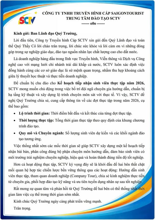 CÔNG TY TNHH TRUYỀN HÌNH CÁP SAIGONTOURIST TRUNG TÂM ĐÀO TẠO SCTV TUYỂN DỤNG THỰC TẬP SINH: