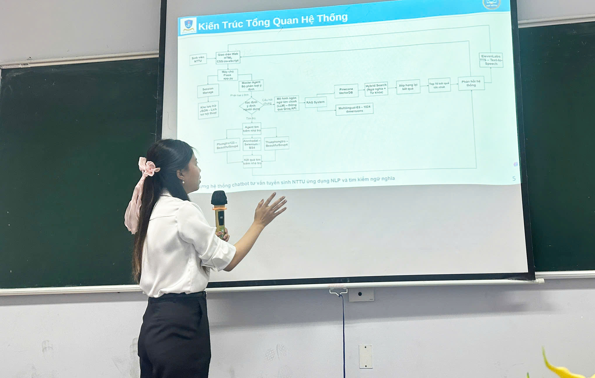 Trong quá trình báo cáo, sinh viên đã trình bày rõ ràng mục tiêu nghiên cứu, cơ sở lý thuyết, phương pháp tiếp cận, mô hình đề xuất cũng như các kết quả thực nghiệm đạt được. Nhiều sinh viên thể hiện sự tự tin, khả năng lập luận logic, tư duy phân tích và phản biện tốt khi trao đổi trực tiếp với Hội đồng. Đặc biệt, một số đề tài được Hội đồng đánh giá cao về tính mới, tính ứng dụng và tiềm năng phát triển thành các sản phẩm thực tế hoặc bài báo khoa học trong tương lai.