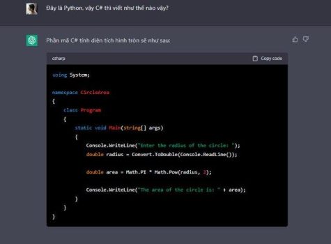 Hơn nữa, ChatGPT có thể lập trình với nhiều ngôn ngữ khác nhau: