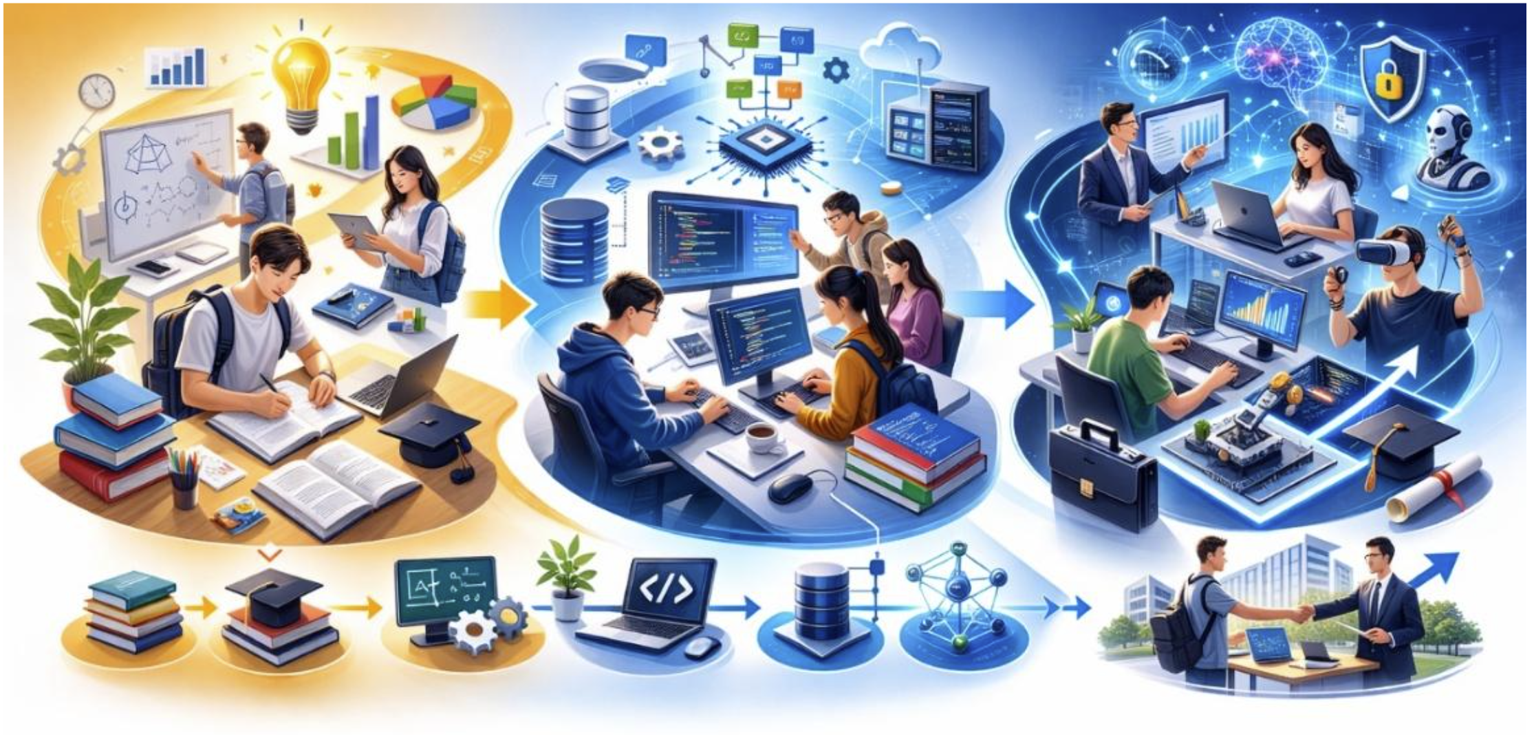 Việc lựa chọn ngành học phù hợp ngay từ đầu sẽ giúp sinh viên định hình rõ ràng con đường nghề nghiệp trong tương lai, đồng thời tạo động lực học tập và phát triển chuyên môn trong suốt quá trình học tại trường. Thông qua các học phần chuyên sâu, dự án thực tế và hoạt động thực tập doanh nghiệp, sinh viên từng bước xây dựng năng lực chuyên môn để sẵn sàng tham gia vào thị trường lao động trong lĩnh vực công nghệ thông tin sau khi ra trường.