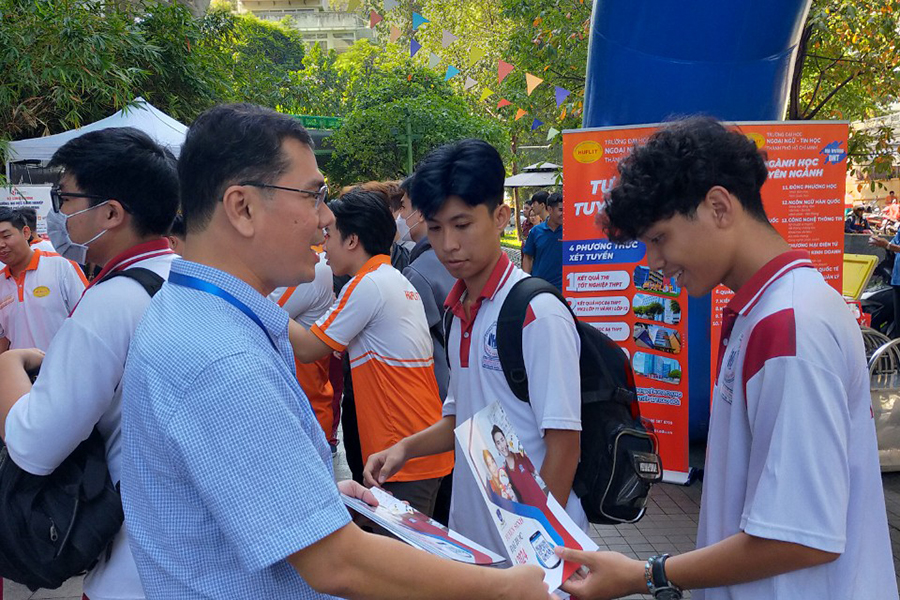 Tại gian hàng Khoa CNTT, Các Thầy Cô BM TTNT Khoa CNTT đã chia sẻ về xu hướng và triển vọng trong lĩnh vực AI, cũng như cách để chuẩn bị cho một sự nghiệp trong ngành này. Học sinh gặp gỡ và trò chuyện yêu cầu công việc, cơ hội thăng tiến, và những kỹ năng cần thiết để chuẩn bị hành trang vào công việc liên quan đến AI.