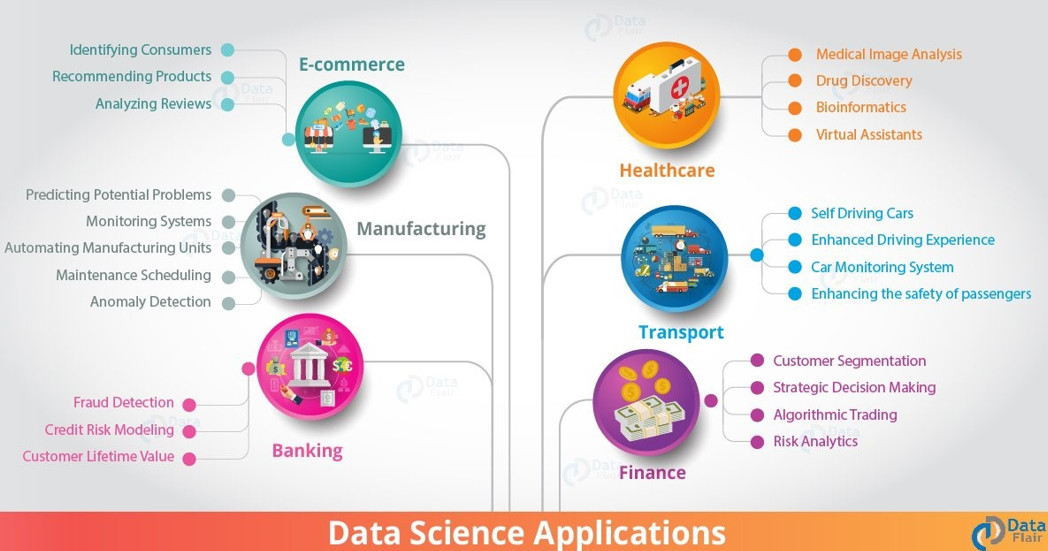 Việc khai thác một lượng rất lớn thông tin khách hàng nhằm tăng hiệu quả kinh doanh đã được đẩy mạnh không chỉ ở các doanh nghiệp lớn trên thế giới như Google, Facebook, Amazon mà còn cả ở Việt Nam như FPT, Viettel, VNG hay Tiki. Dự đoán tiềm năng rất lớn của lĩnh vực Khoa học dữ liệu để ứng dụng vào các lĩnh vực như y học (chẩn đoán bệnh và đưa ra phác đồ điều trị nhờ phân tích một lượng lớn dữ liệu người bệnh trước đó), quản lý xã hội (quản lý giao thông, quản lý dân cư, xác định nhu cầu giáo dục, y tế, việc làm, …), và nói chung trong mọi lĩnh vực mà việc khai thác thông tin hiệu quả hơn sẽ đem lại lợi ích kinh tế – xã hội. Một số ứng dụng khoa học dữ liệu quan trọng và đang định hình các ngành công nghiệp trên thế giới ngày nay như ngân hàng, tài chính, chế tạo, sức khỏe, vận chuyển và thương mại.