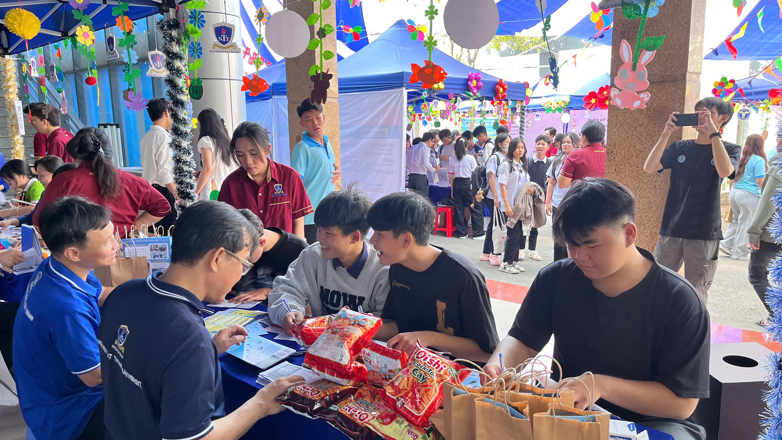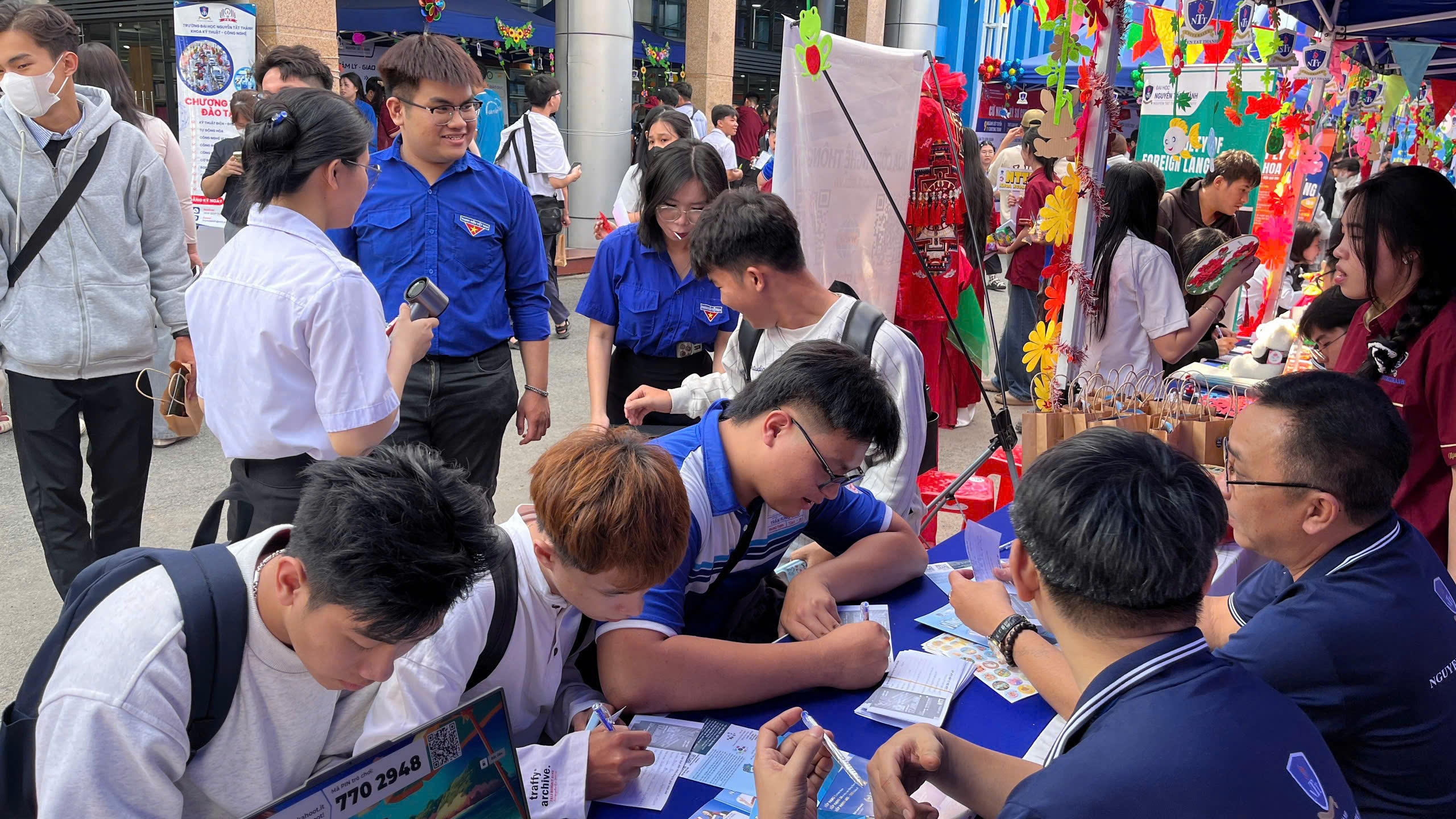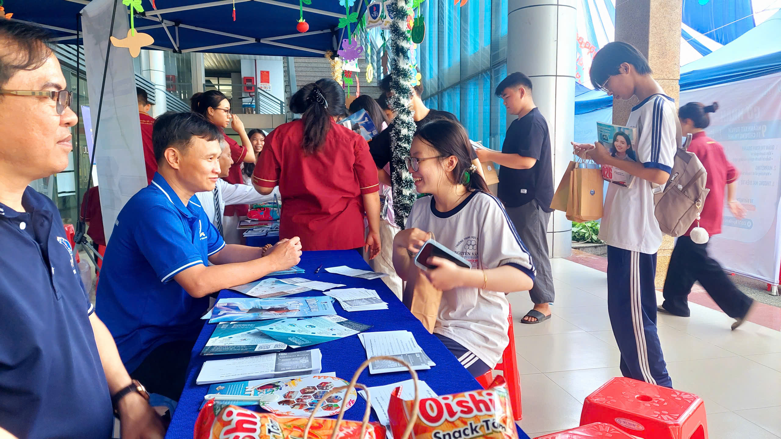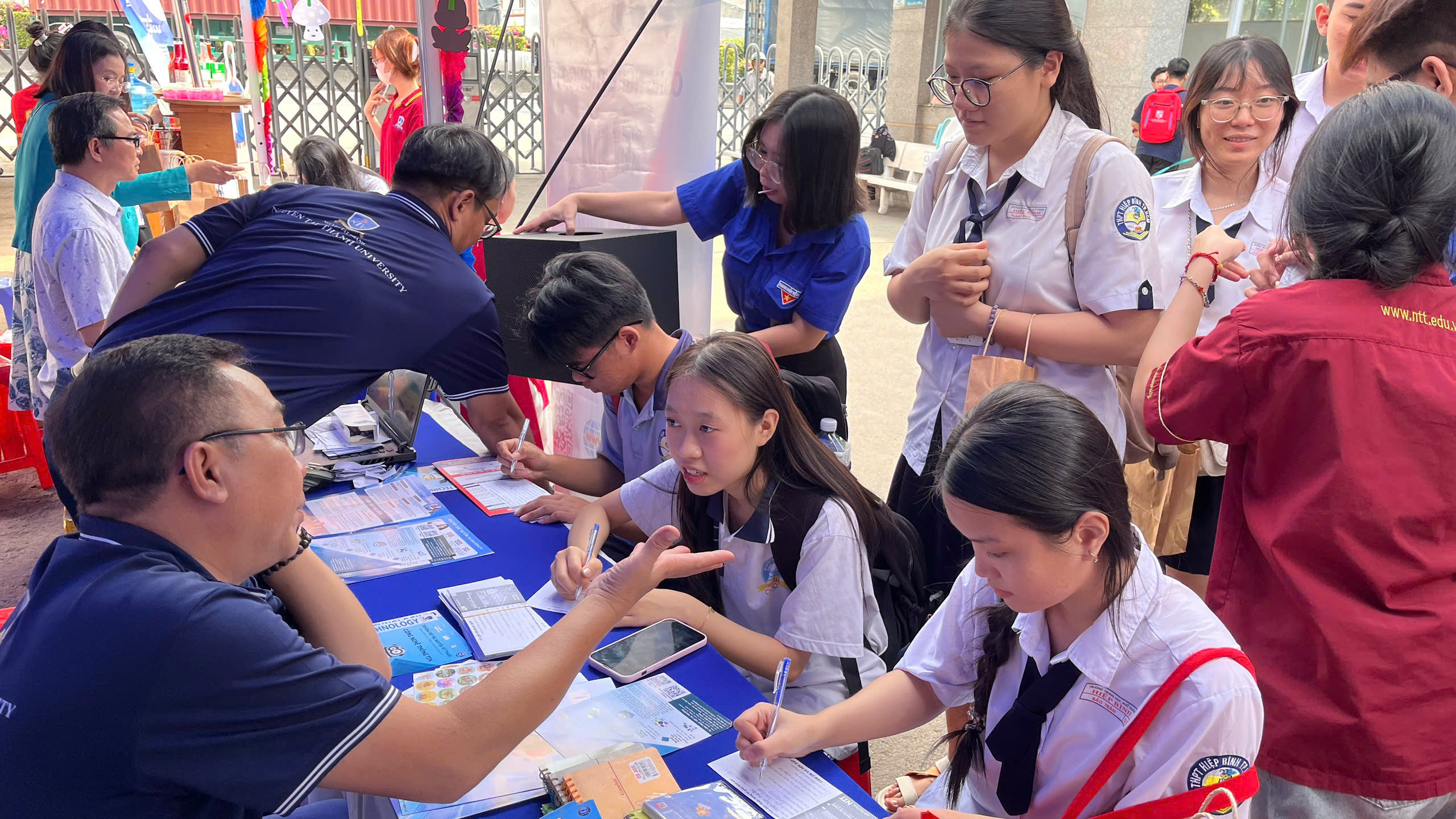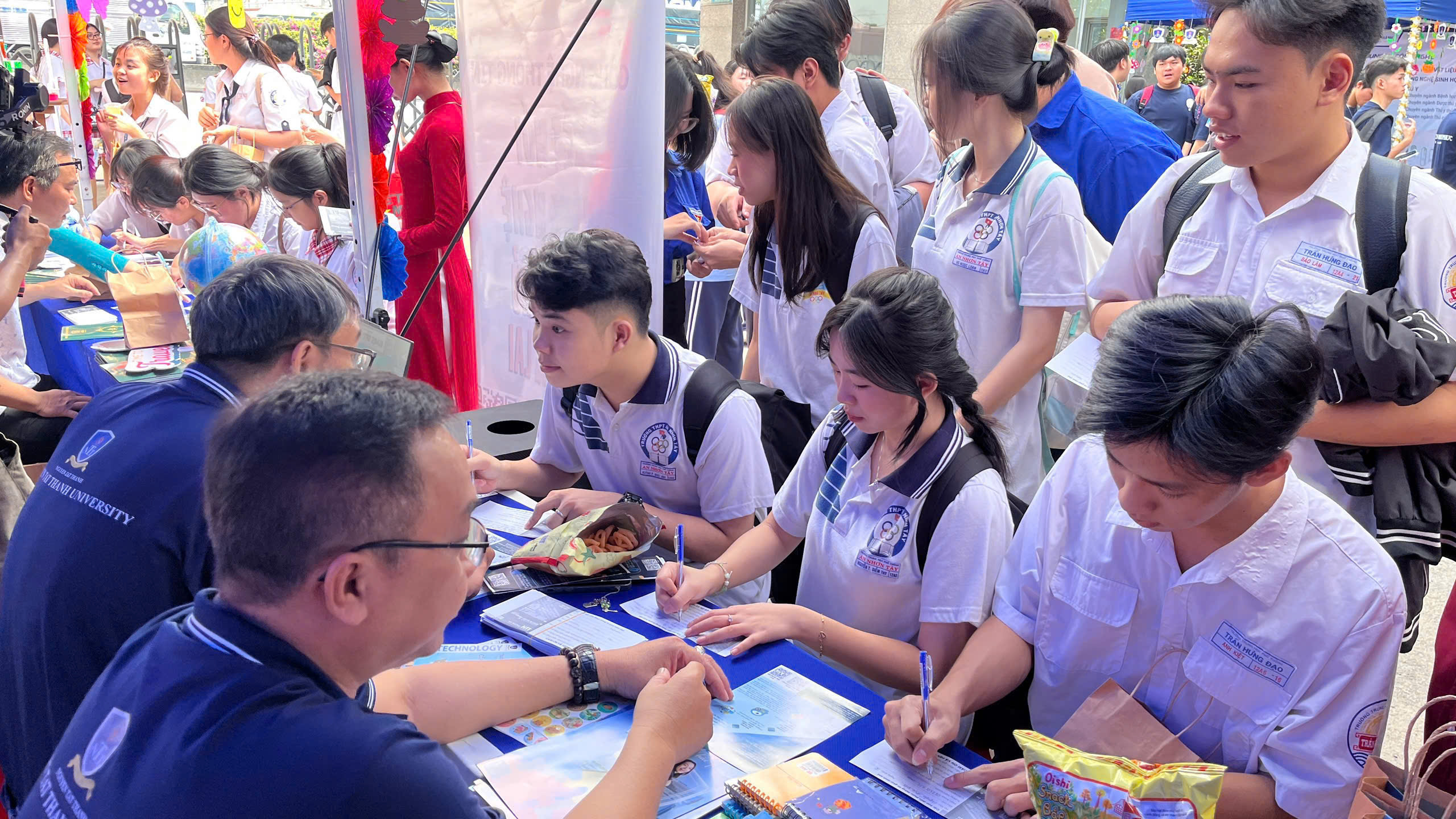 Hình ảnh các bạn học sinh chăm chú lắng nghe tư vấn, háo hức đăng ký thông tin hay cùng nhau khám phá các gian hàng đã thể hiện rõ sự quan tâm và mong muốn định hướng tương lai. Đặc biệt, sự hỗ trợ nhiệt tình từ đội ngũ sinh viên tình nguyện và giảng viên đã góp phần tạo nên một môi trường thân thiện, gần gũi, giúp học sinh cảm thấy tự tin hơn khi bước vào môi trường đại học.