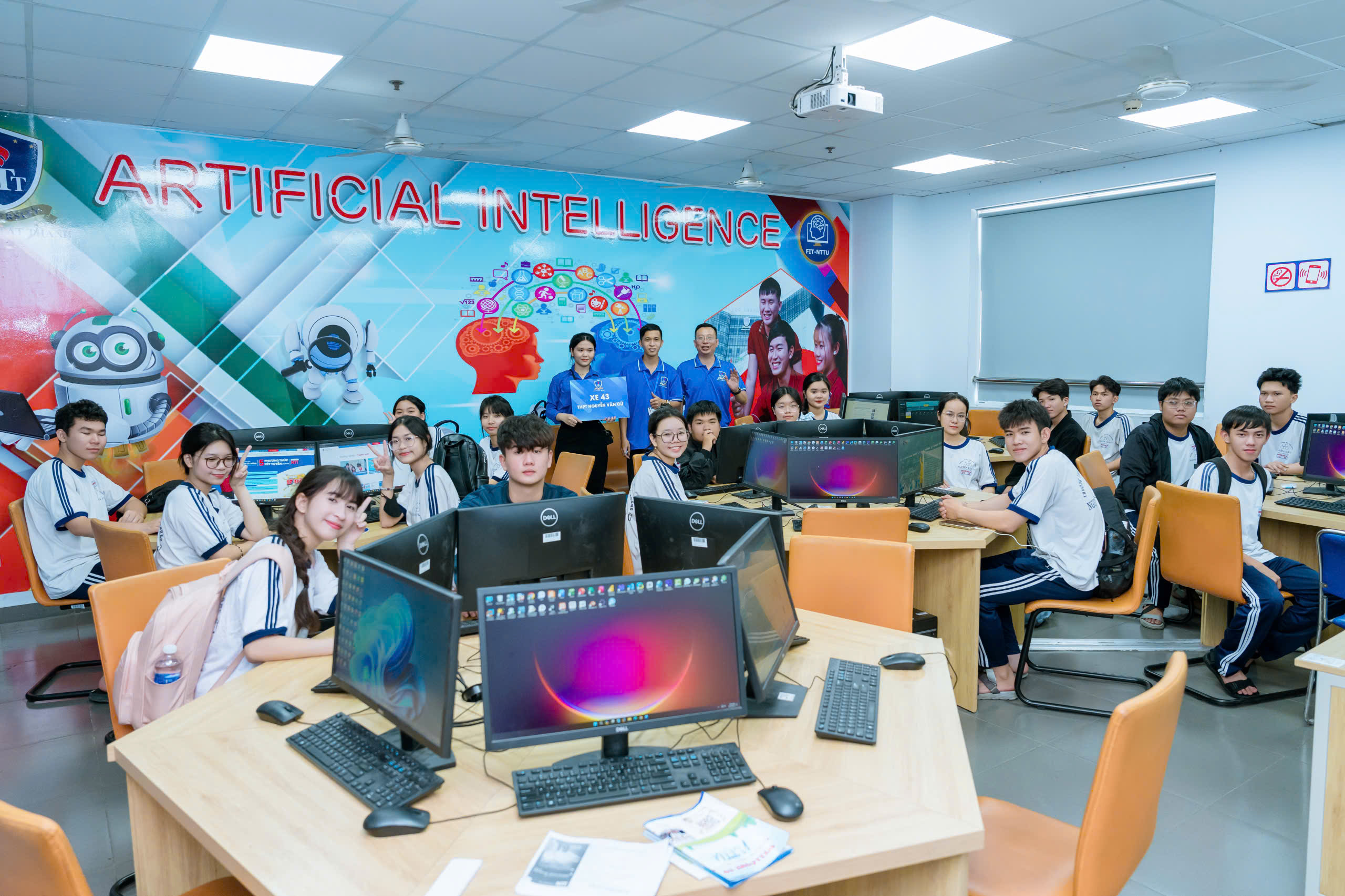 Bên cạnh đó, khu vực trải nghiệm thực tế của các khoa, đặc biệt là Khoa Công nghệ thông tin, đã thu hút đông đảo học sinh tham gia. Các bạn được trực tiếp tham gia vào các hoạt động như lập trình cơ bản, thử nghiệm công nghệ trí tuệ nhân tạo (AI), hay khám phá các ứng dụng công nghệ hiện đại. Không gian phòng lab hiện đại, được trang bị đầy đủ máy tính và thiết bị, đã mang đến trải nghiệm học tập thực tế, giúp học sinh hình dung rõ hơn về môi trường học tập tại trường.