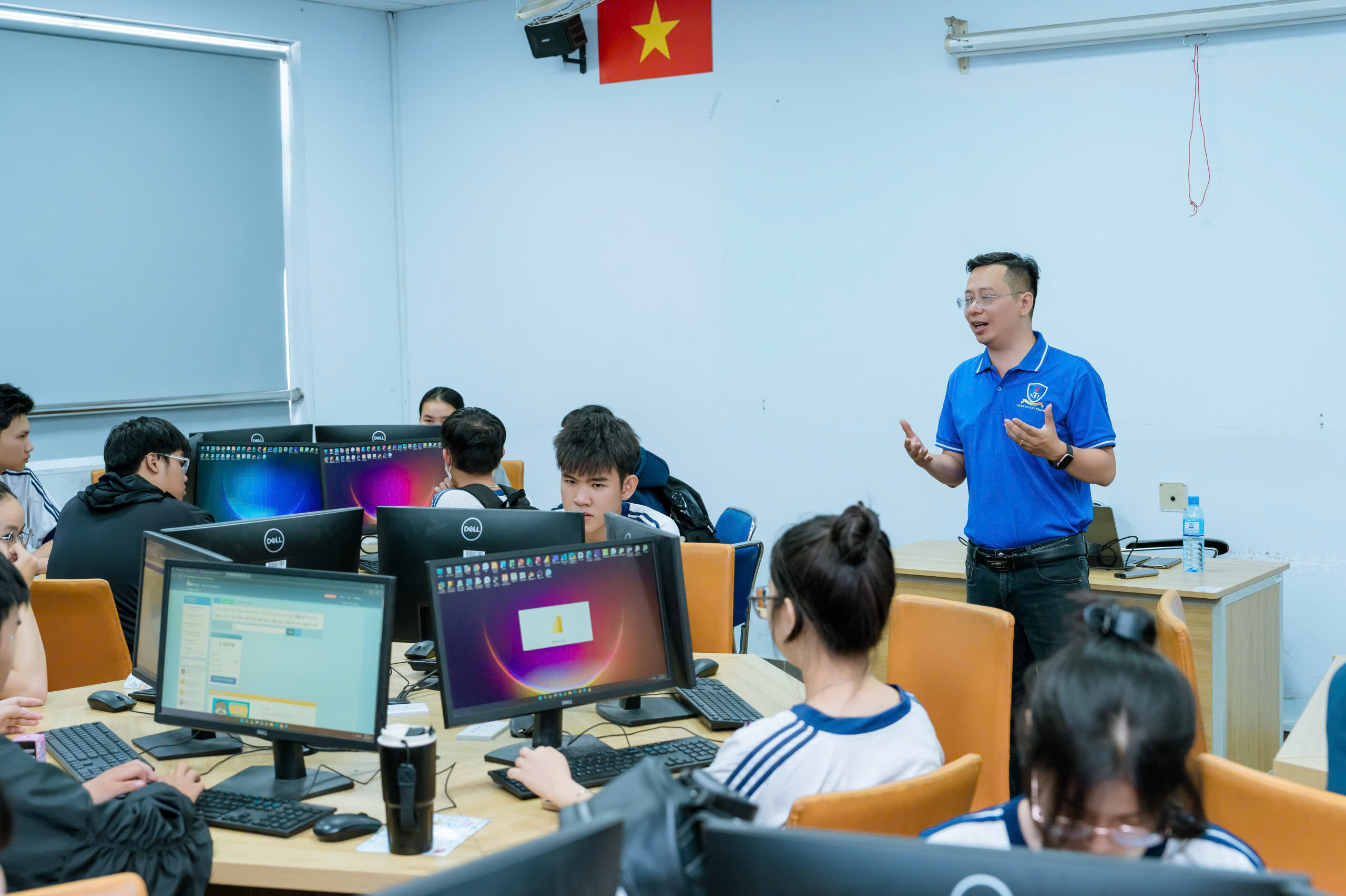 Giảng viên Khoa CNTT tư vấn học sinh tại Lab Khoa CNTT